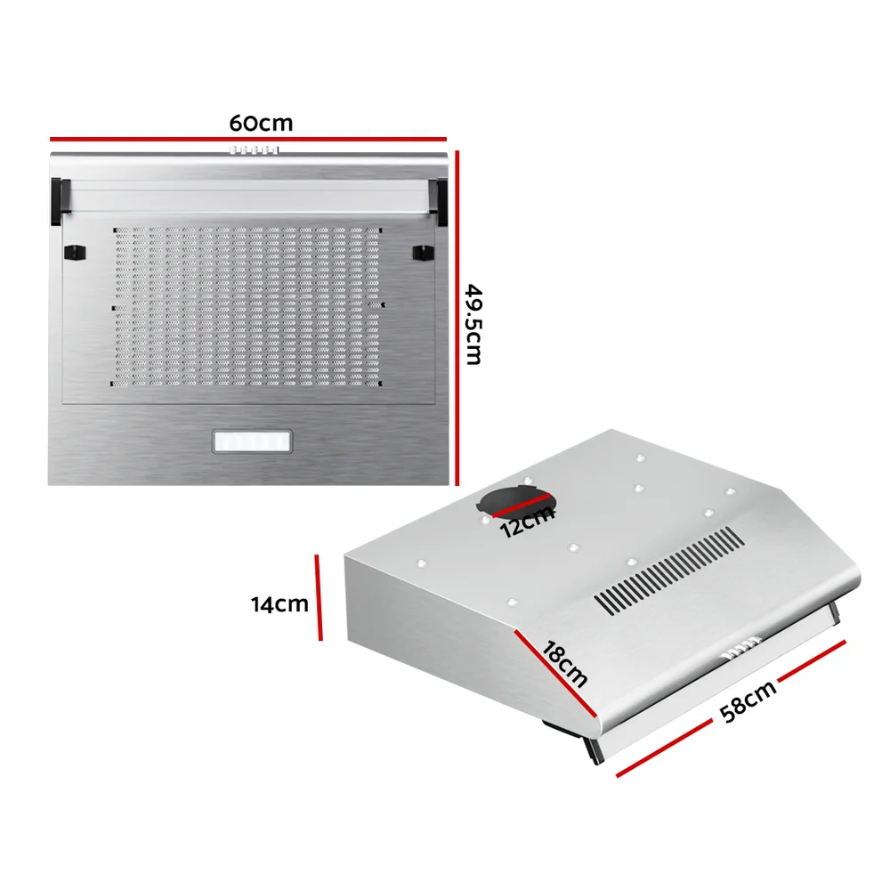 Devanti 600mm Stainless Steel Range Hood 60cm with 3-Speed Control, LED Light, and Removable 5-Layer Aluminium Filter