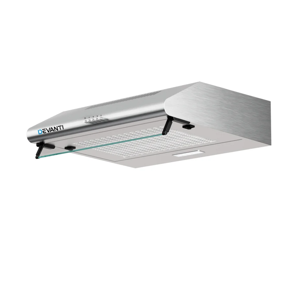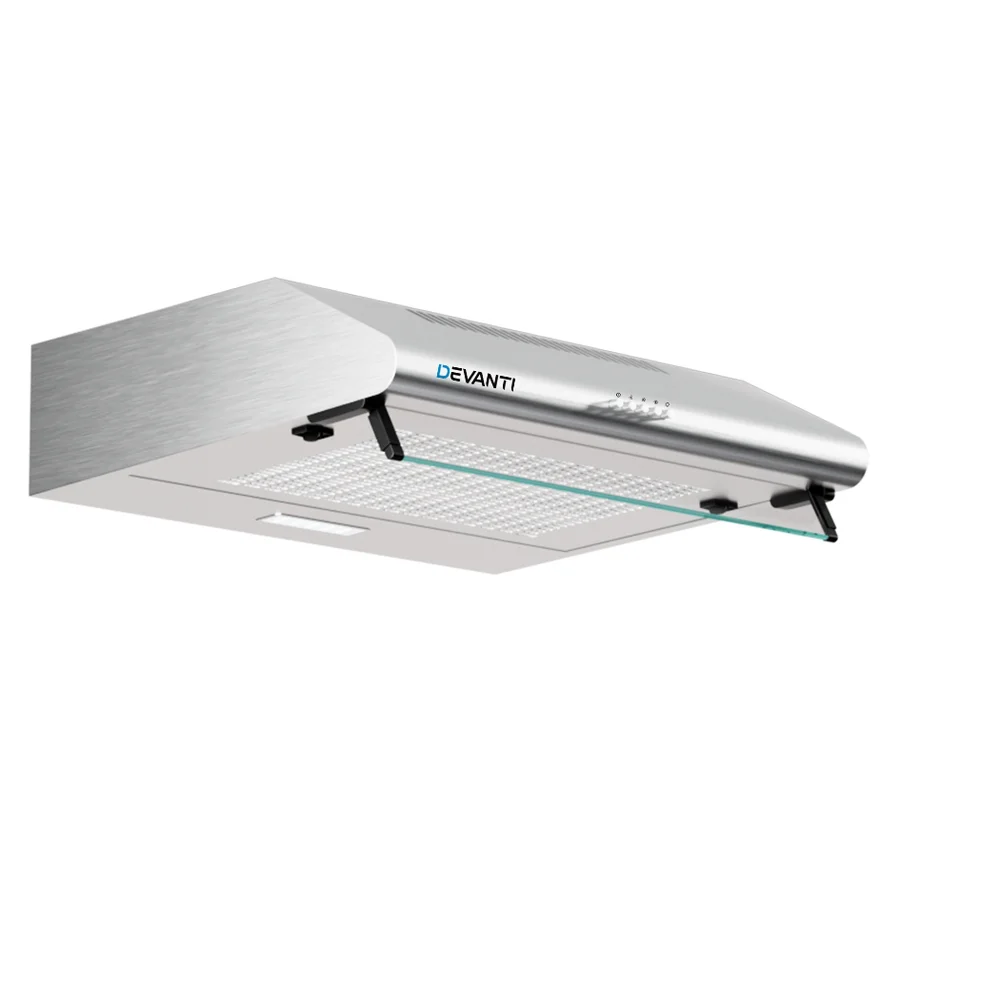 Devanti 60cm Stainless Steel Range Hood with LED Light, 3-Speed Fan, Glass Visor & 180m³/h Suction Power