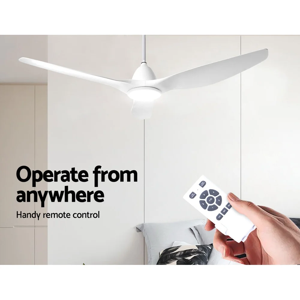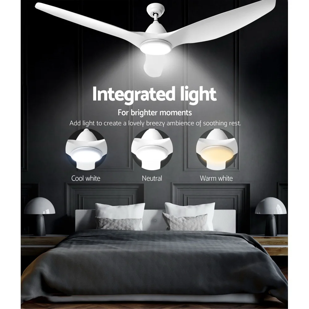 Devanti 52'' White Ceiling Fan with DC Motor, LED Light, Remote Control, 6 Speeds, Quiet Operation, Energy Efficient