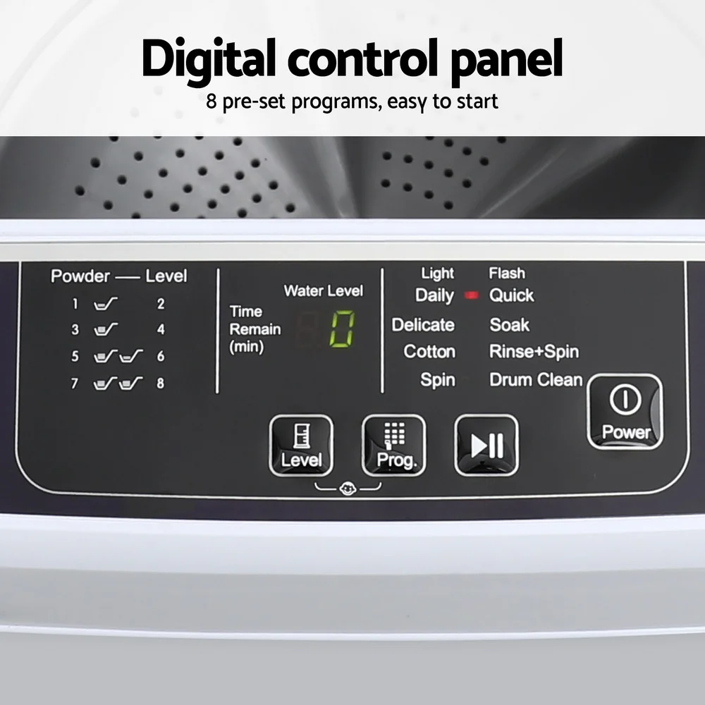 Devanti 6kg Top Load Washing Machine White, Stainless Steel Tub, 8 Programmemes, Quick Wash, Digital Control Panel