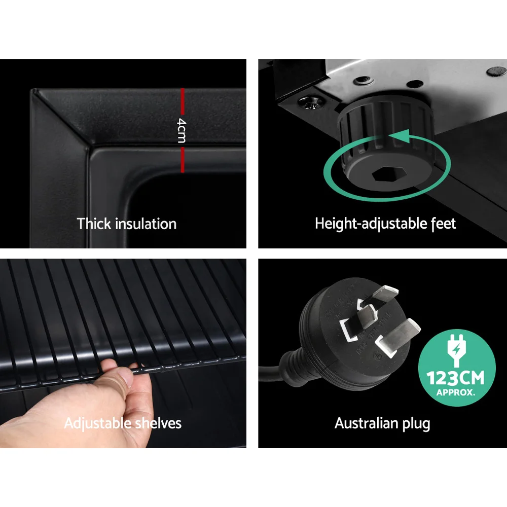 Introducing the Devanti 70L Bar Fridge, perfect for those who need efficient cooling in a compact space. This sleek black fridge boasts a double-glazed glass door and five temperature settings, allowing you to customise your cooling experience. With adjustable shelves and height-adjustable feet, it's designed for versatility. The eco-friendly R600a refrigerant and energy-efficient 85W power ensure both performance and sustainability. The built-in LED lamp illuminates your fridge contents, while the extra thick insulation keeps everything consistently chilled. Whether as a secondary or primary fridge, the Devanti Bar Fridge is a smart choice. Enjoy peace of mind with a 1-year warranty.