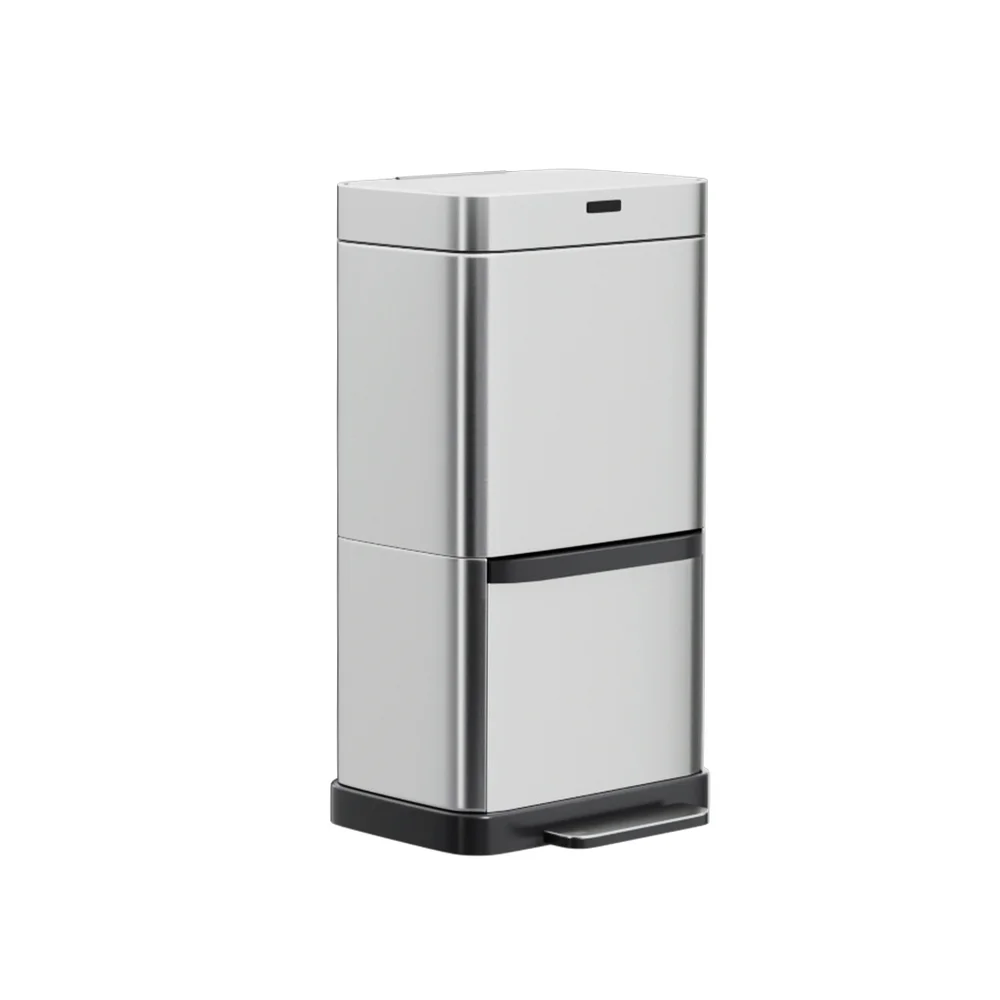 Devanti 70L Motion Sensor Pedal Bin, Stainless Steel, Dual Compartments, Fingerprint-Resistant, Soft Close, Silver
