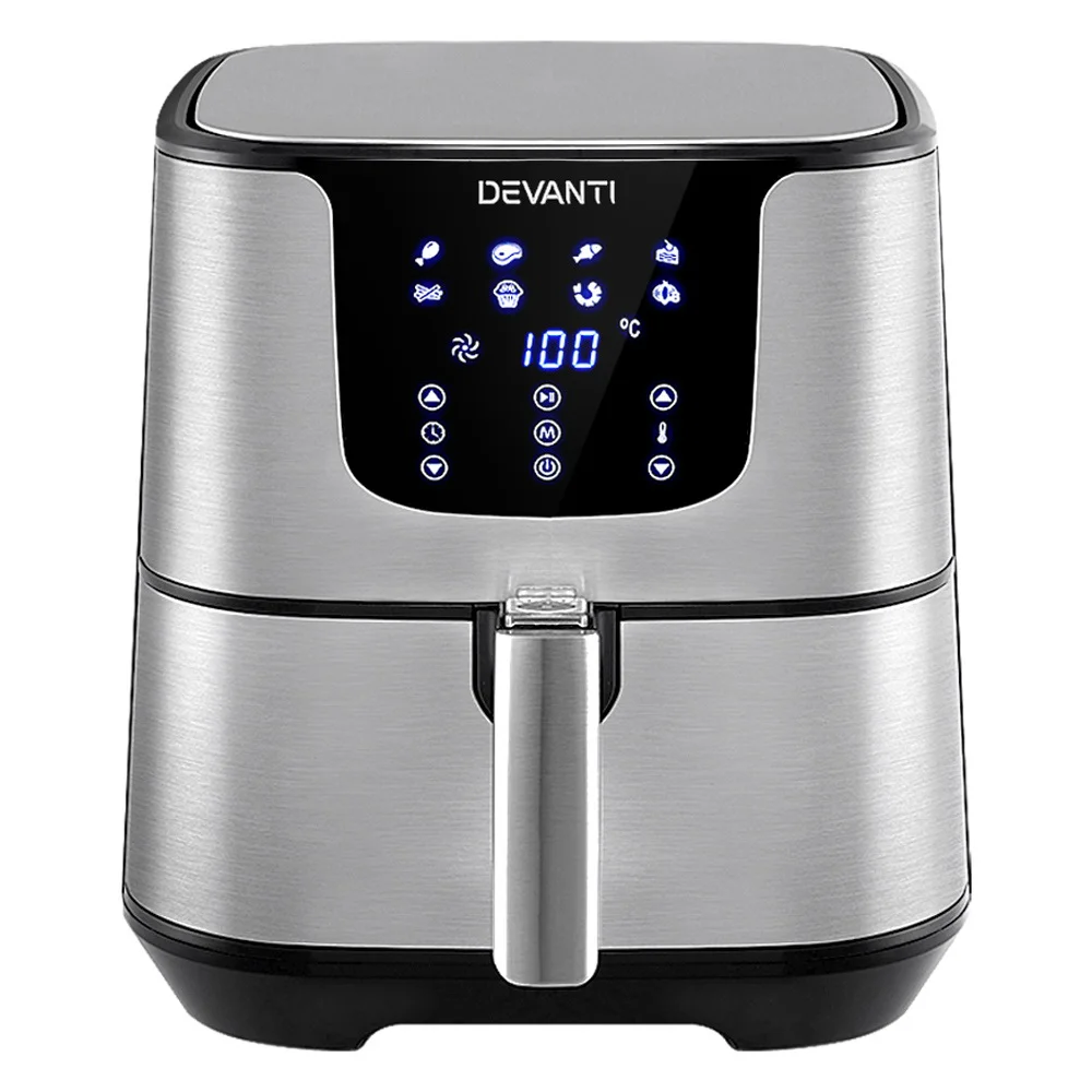 Devanti 7L Air Fryer with LCD Touch Control, Stainless Steel, 1700W Powerful 8-in-1 Cooking, Dishwasher Safe