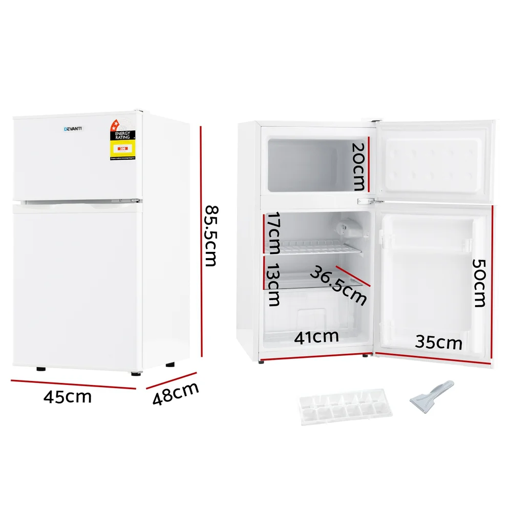 Devanti Bar Fridge, White, 95L - Compact & Portable, Energy-Efficient with Twin Temperature Zones & Eco-Friendly Design