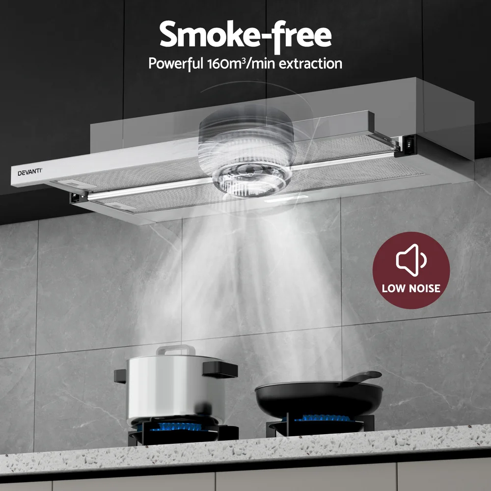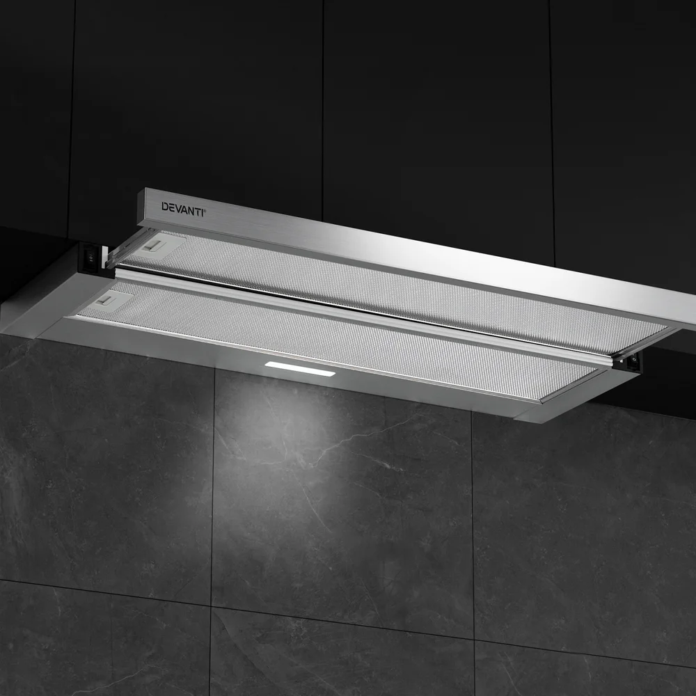 Devanti 900mm Slide Out Range Hood 90cm Stainless Steel, 2-Speed, LED, Washable Filters, 160m³/h Extraction