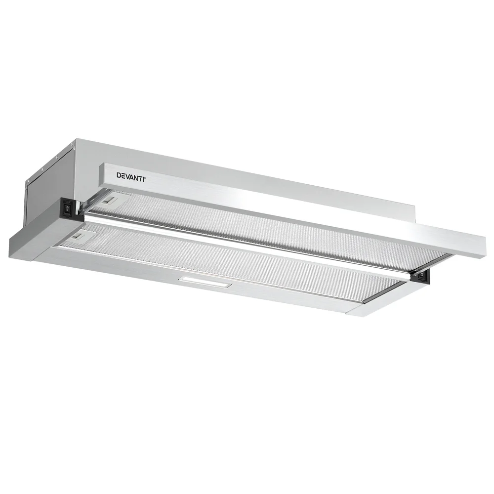 Devanti 600mm Stainless Steel Slide-Out Range Hood – High Performance, 2-Speed Motor, LED Light, 60cm, Black/Silver