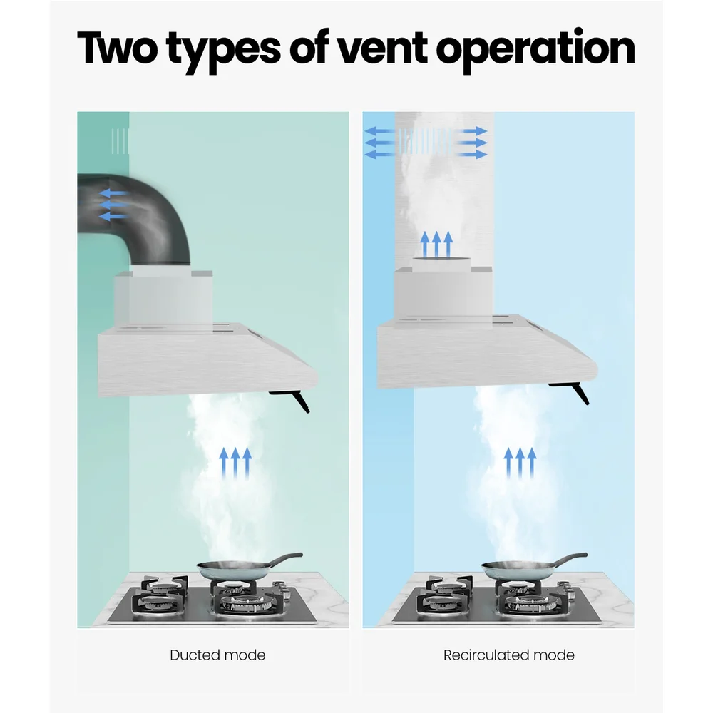 Devanti 900mm Stainless Steel Range Hood - Powerful 3-Speed, LED Lighting, 5-Layer Filters, Adjustable Wall Mount