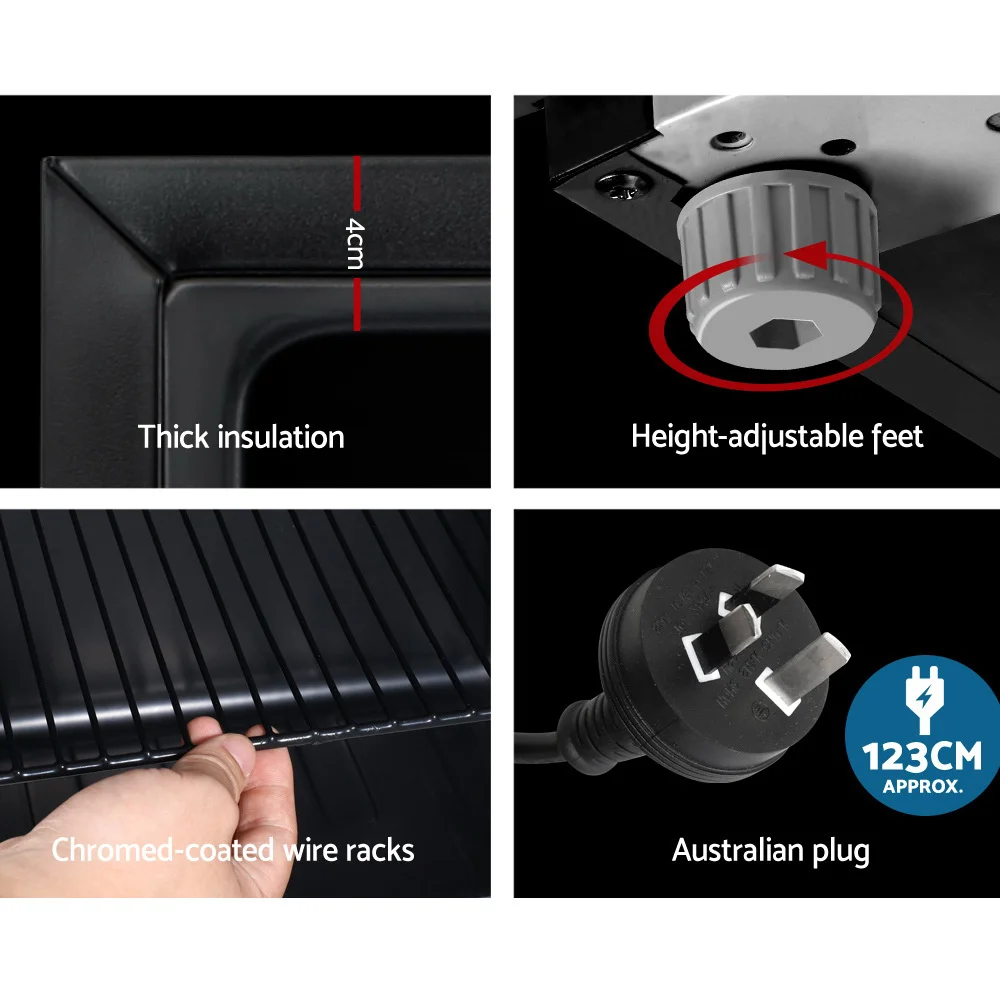 Introducing the Devanti 98L Bar Fridge, a compact yet powerful solution for keeping your food and beverages perfectly chilled. With its sleek black design and energy-efficient operation, this mini fridge is ideal for both domestic and commercial settings. It features seven temperature settings, adjustable shelves, and a double-glazed door for optimal cooling and freshness. The fridge's eco-friendly R600a refrigerant and extra thick insulation ensure smooth, quiet, and robust performance. Additional highlights include a built-in LED lamp, height-adjustable feet, and a secure built-in lock. Not suitable for recessed or built-in setups, the Devanti Bar Fridge is a smart investment for any space.