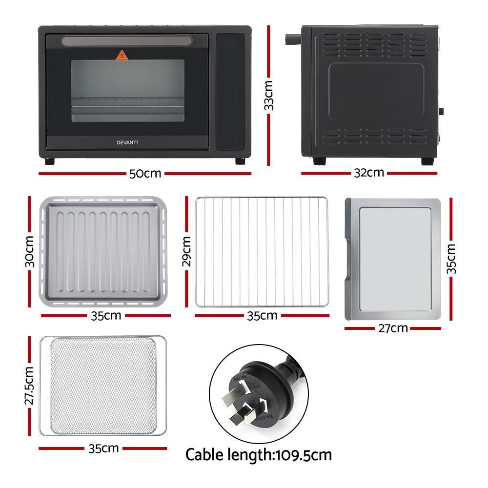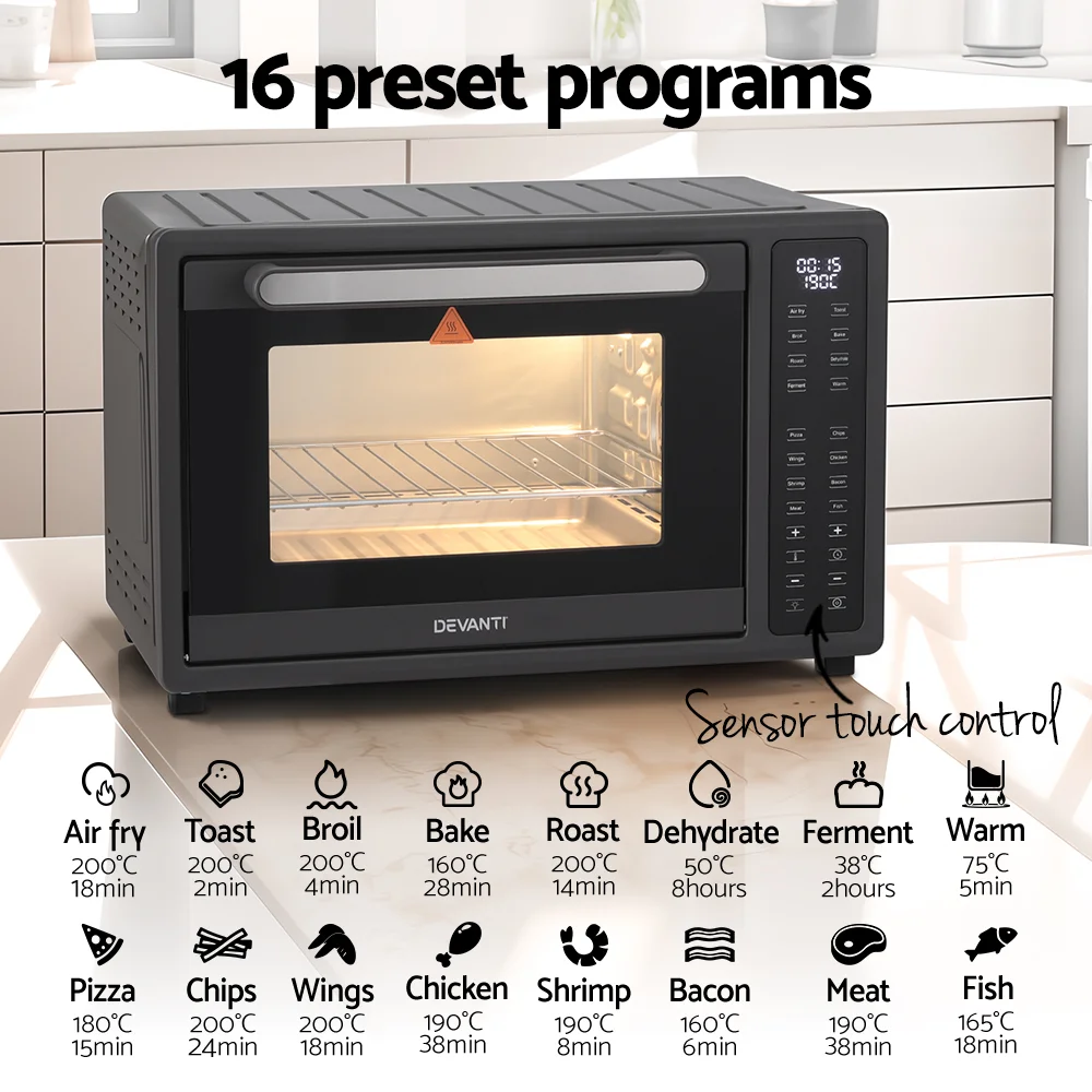 Devanti 32L Air Fryer Oven with LCD Touch, 1700W Power, 16 Presets, 360° Air Circulation, Bonus Accessories Included