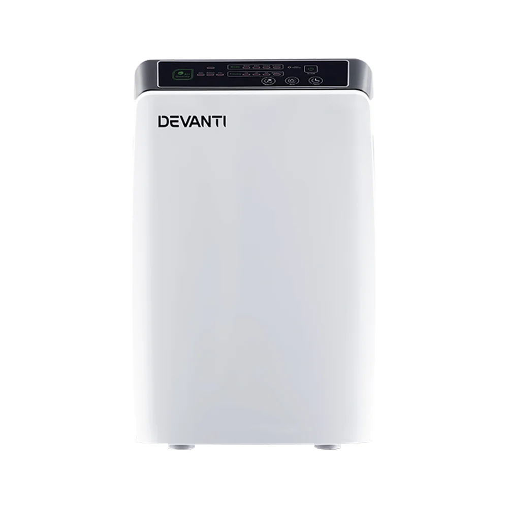 Experience fresher, cleaner air with the Devanti Air Purifier. Equipped with a 4-stage HEPA filtration system, it removes 99.97% of allergens and particles as small as 0.3 microns. The built-in ioniser enhances purification by releasing negative ions. Easily control settings with the digital panel or remote. The air quality sensor provides real-time updates with coloured indicators. Choose from 4 modes, including a Silent sleep mode for quiet operation. The purifier is perfect for spaces of 20-30 sqm, featuring a convenient handle, 8-hour timer, and filter change indicator. Enjoy a breath of fresh air anytime with Devanti.