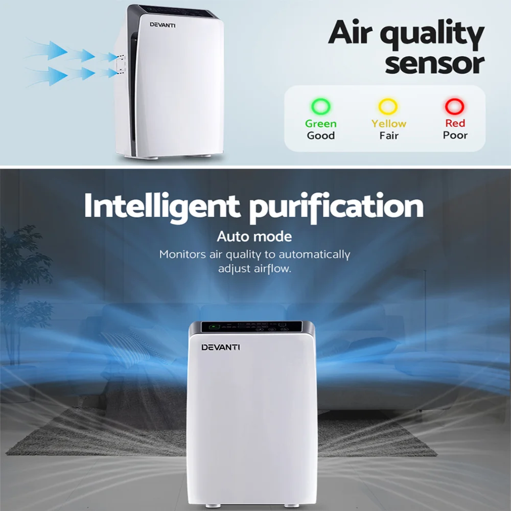 Devanti Air Purifier 4-Stage HEPA | 99.97% Allergen Removal | Built-in Ioniser | Remote Control | 20-30m² Coverage