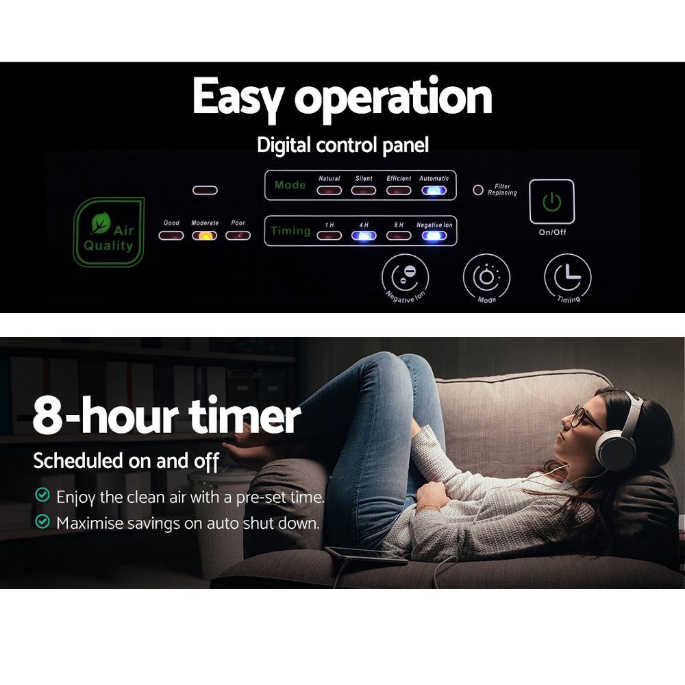 Devanti Air Purifier 4 Stage HEPA H11 Filter, 500m³/h, UV, Anion, PM2.5 Display, Remote, 60m²