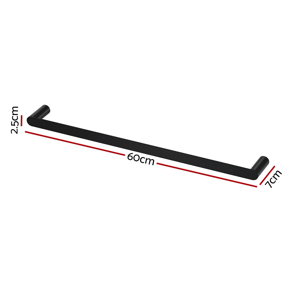 Devanti 600mm Wall Mounted Towel Rail Rack Holder, Single Bar, 304 Stainless Steel, Matte Black, Rust Resistant
