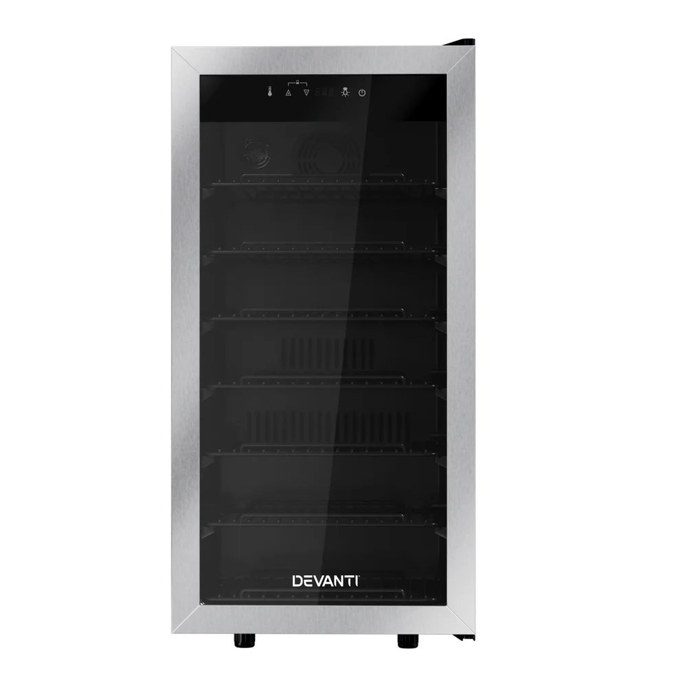 Devanti Wine Fridge Cooler, Black, 34 Bottles, 80L, Compression Cooling, UV-Resistant Glass, Touch Control