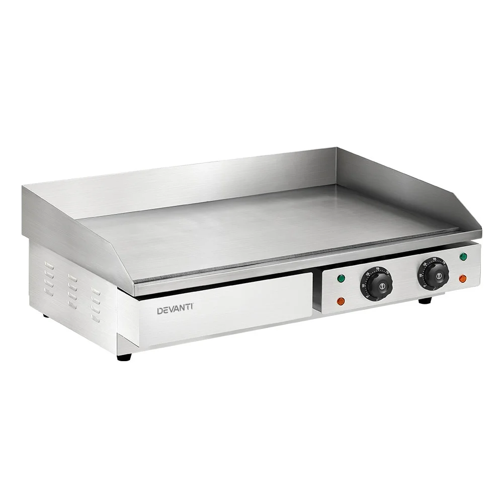 Devanti 73cm Commercial Electric Griddle, 4400W, Stainless Steel, Dual-Zone Cooking, S-Shaped Heating, 50-300°C