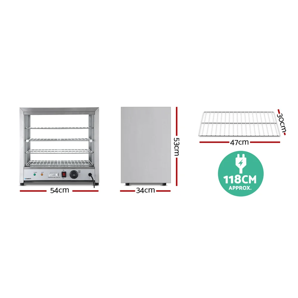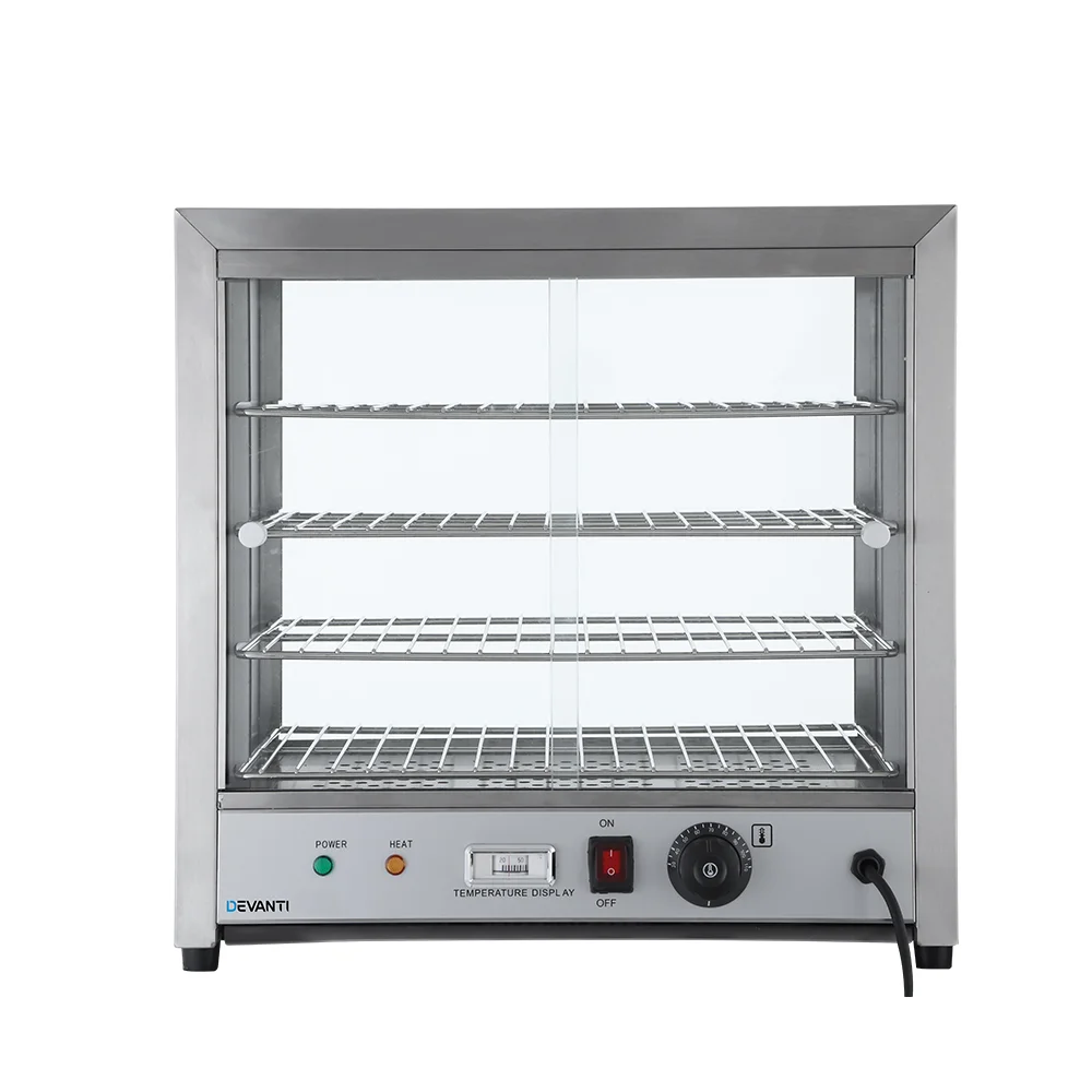Devanti Commercial Food Warmer 54cm 4-Tier Tempered Glass Cabinet with Stainless Steel Trays & Adjustable Thermostat