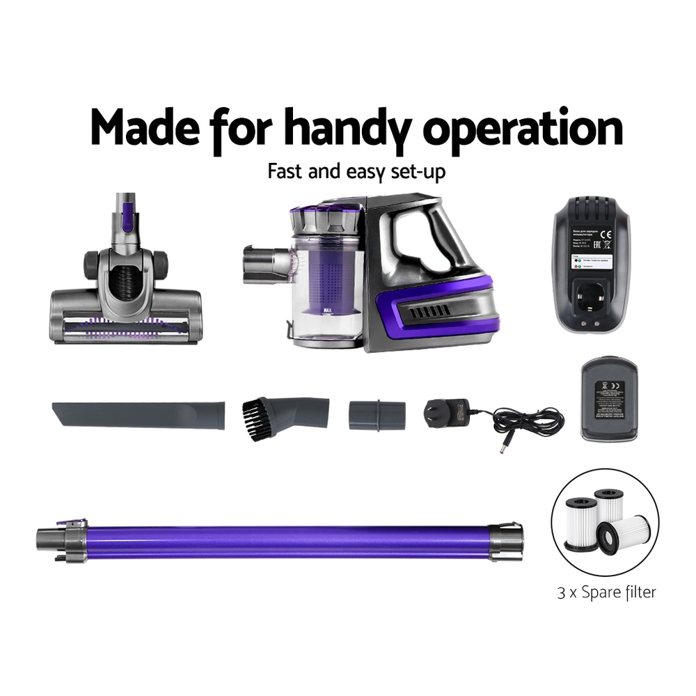 Devanti Cordless Stick Vacuum Cleaner - 150W, 8000Pa Suction, HEPA Filter, 2000mAh Battery, Purple, 35 Min Runtime