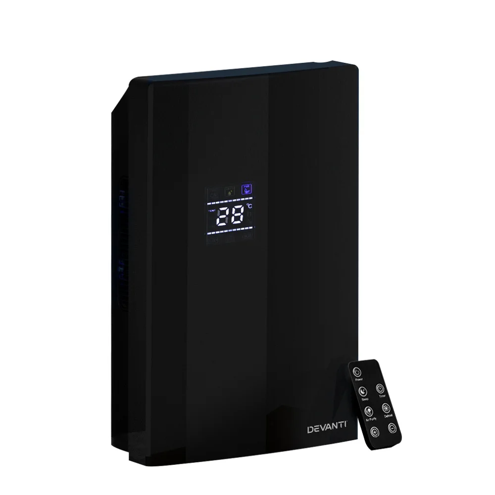 Devanti Dehumidifier and Air Purifier, ABS Plastic, 2L Capacity, Black, 30sqm Coverage, Quiet Operation, 1-Year Warranty
