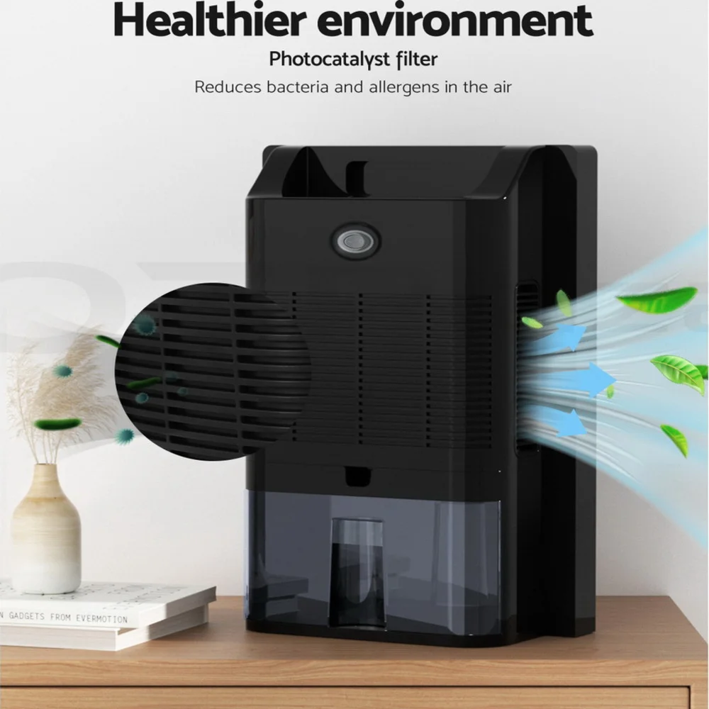 Devanti Dehumidifier 600ML Black Mini Air Purifier with Quiet Peltier Technology, Compact and Energy Efficient Design