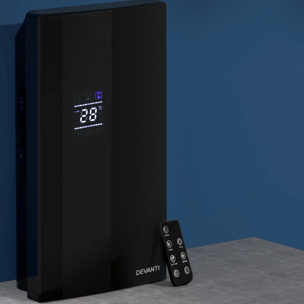 Transform your home environment with the Devanti Dehumidifier 2L Air Purifier in sleek black. Combat moisture issues like mould and condensation while purifying the air with a photocatalyst filter. Enjoy whisper-quiet operation, smart control, and a 24-hour timer for effortless use. With a 2L tank and dual drainage options, it's perfect for spaces up to 30m². Lightweight and portable, it’s your ultimate solution for a fresher, drier home. Includes a 1-year warranty for peace of mind.