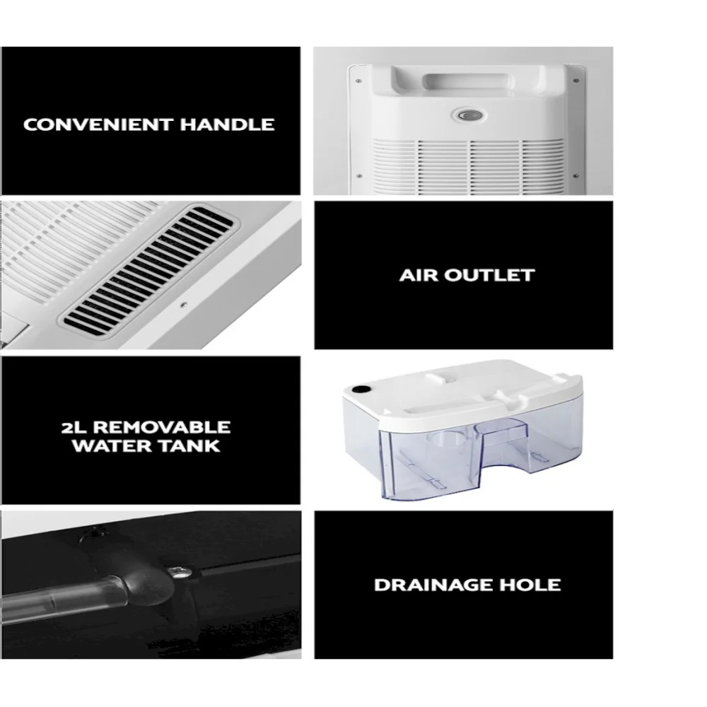 Transform your home environment with the Devanti Dehumidifier 2L Air Purifier in White. Designed to tackle moisture issues, it prevents mould and mildew while purifying the air with a photocatalyst filter. Enjoy features like a 24-hour timer, whisper-quiet operation, and remote control convenience. With a 2L water tank and two drainage options, it's perfect for spaces up to 30㎡. Say goodbye to dampness and hello to fresh, clean air.