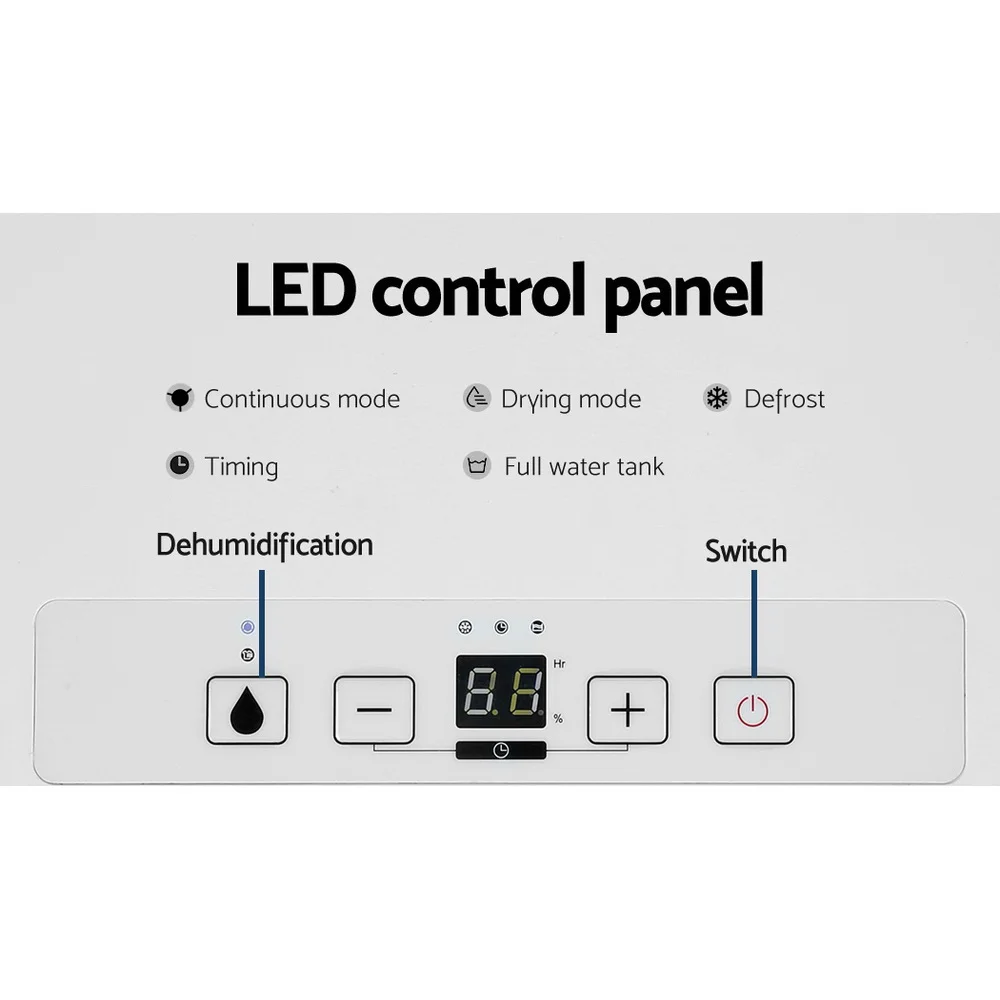 Transform your home into a haven of fresh air with the Devanti Dehumidifier 12L Air Purifier. This sleek, white 2-in-1 device efficiently removes strong odours, dust, and high humidity, tackling mould and mildew with ease. Its powerful compressor and washable filter ensure optimal air quality without excessive energy use. Set the 24-hour timer and let the device quietly purify your space. With a 2.1L tank, LED display, and portable design, breathe easy and enjoy a healthier environment effortlessly.