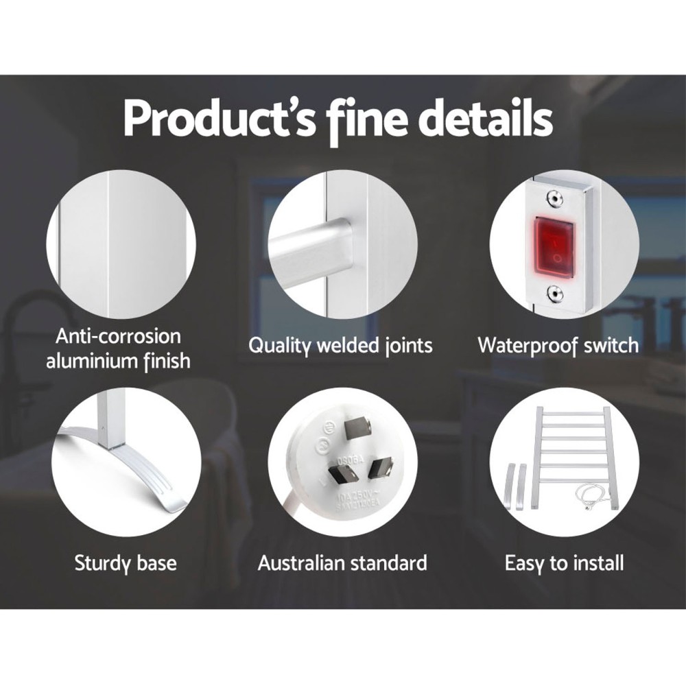 Devanti Freestanding Electric Heated Towel Rail – 6-Bar, Anti-Corrosion Aluminium, Quick Heat, Energy Efficient, 100W