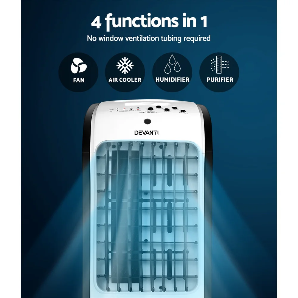 Devanti Evaporative Air Cooler, 7L, Black, 4-in-1 Air Cooling, Fan, Humidifier, Purifier, Energy-Saving, Remote Control