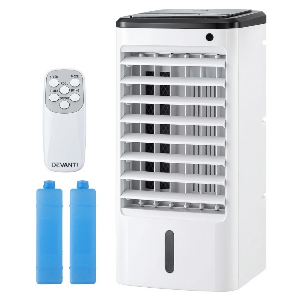 Devanti Evaporative Air Cooler Conditioner, 8L Tank, Black & White, 3-Speed, with Remote Control and Ioniser