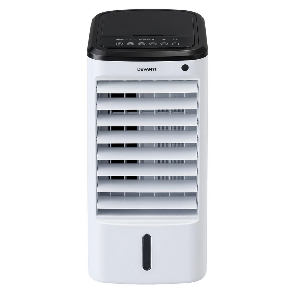 Devanti Evaporative Air Cooler, 7L, Black, 4-in-1 Air Cooling, Fan, Humidifier, Purifier, Energy-Saving, Remote Control