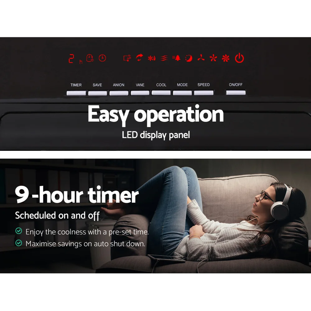 Experience the perfect blend of cooling and purification with the Devanti Evaporative Air Cooler Fan Conditioner 8L. This sleek, compact unit doubles as an air cooler and humidifier, featuring an 8L water tank and ice crystals for enhanced cooling. With adjustable louvres, 60° oscillation, and a 3-speed cyclone fan, enjoy tailored comfort across three modes: Normal, Natural, and Sleep. The built-in ioniser and removable filters ensure clean air, while the LED digital control panel and remote make operation effortless.