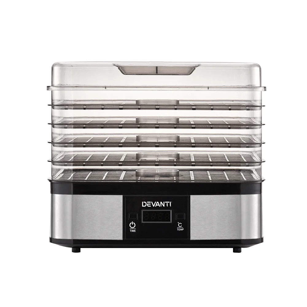 Devanti 6-Tray Food Dehydrator with LCD Control, Stainless Steel Body & Trays, Adjustable Timer & Thermostat, 420-500W