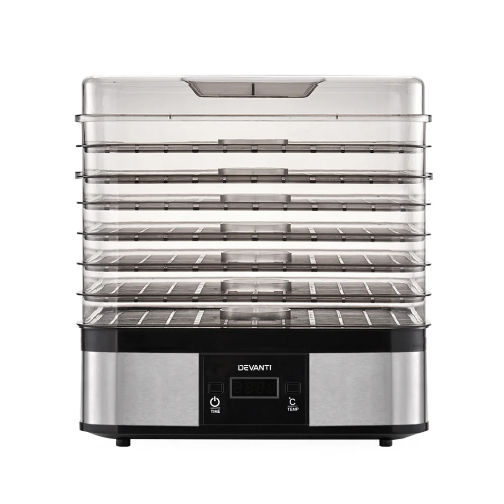 Devanti 6-Tray Food Dehydrator, Stainless Steel, LCD Control, Adjustable Thermostat, Commercial Fruit & Jerky Dryer