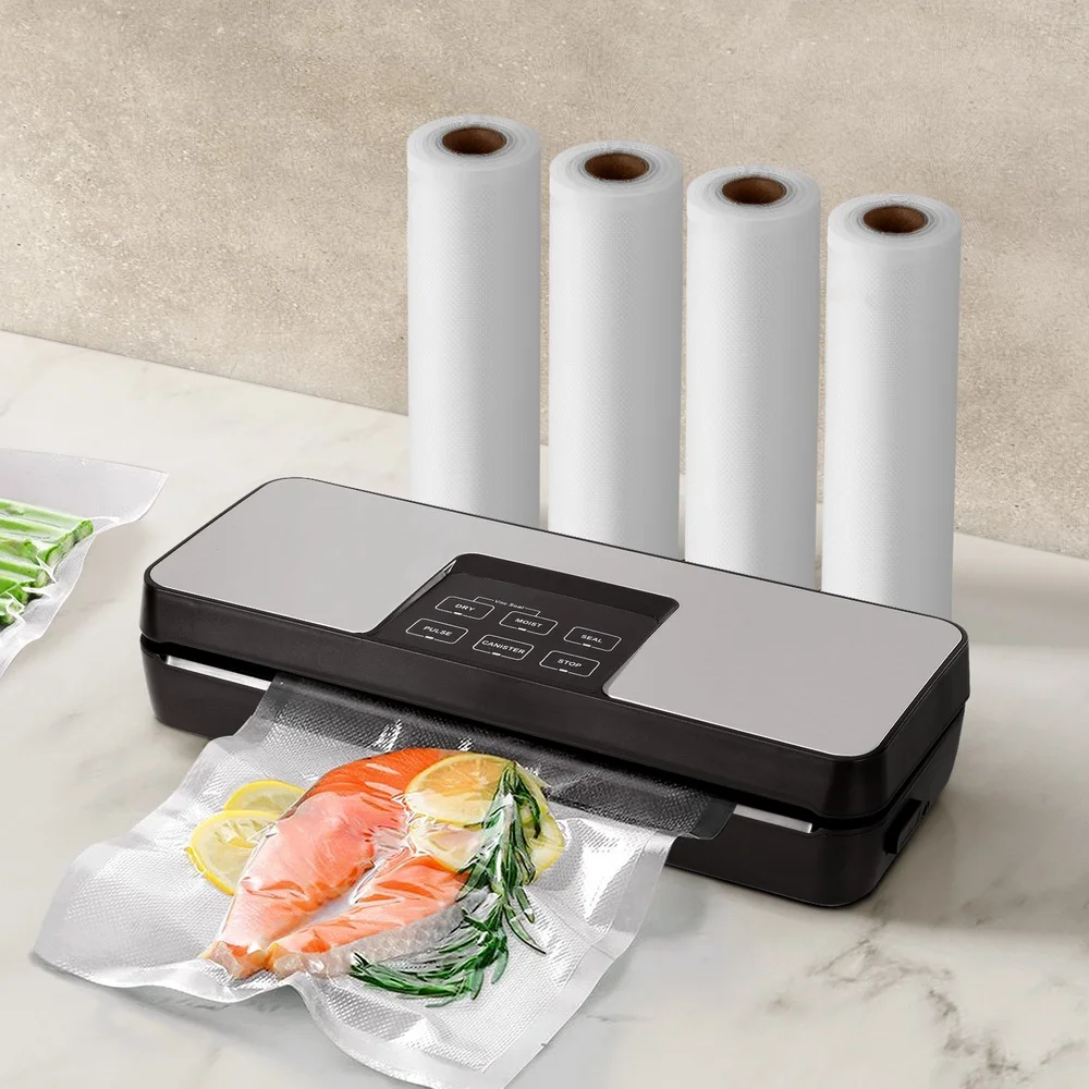 Keep your food fresher for longer with the Unbranded, Devanti Food Vacuum Sealer Machine. Designed for both home and commercial kitchens, it features 110W power and -80kpa suction for airtight sealing, preserving wet or dry foods with ease. Enjoy smart touch controls, automatic/manual modes, and a built-in cutter for effortless operation. Portable and easy to clean, this sealer comes with 4 rolls of vacuum bags, 10 bonus bags, and a vacuum tube for canisters, making food storage simple and efficient.