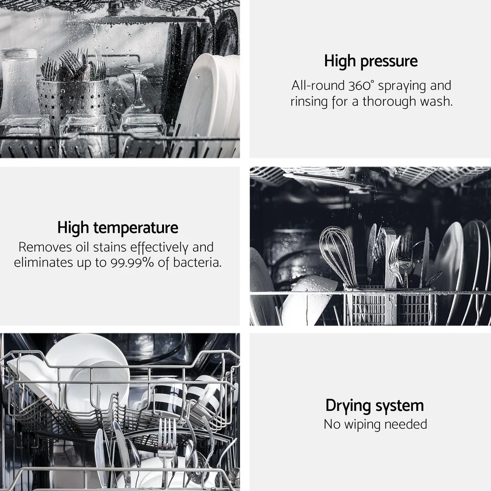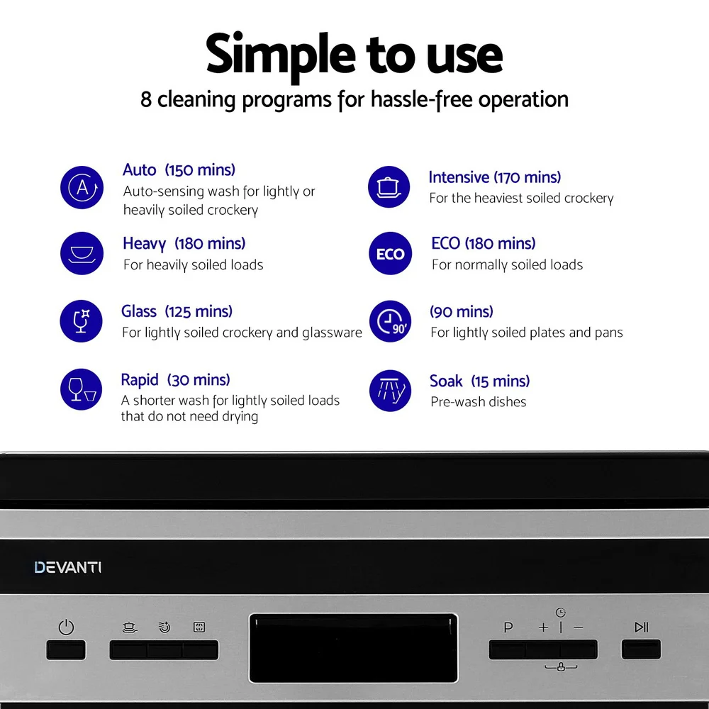 Devanti 60cm 14-Setting Freestanding Dishwasher Silver, 4.5-Star Rating, LED, Child Lock, Quiet Operation