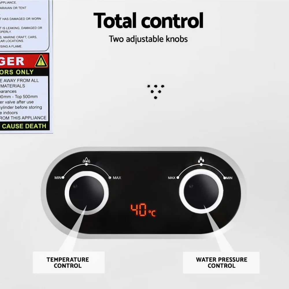 Experience the luxury of a warm shower in the great outdoors with the Devanti Portable Gas Water Heater. This versatile outdoor shower offers convenience with an LED display and prioritises safety with a maximum temperature limit of 60°C. The showerhead's automatic on/off trigger ensures easy use, while its lightweight design with a carry handle makes it perfect for camping or beach outings. Enjoy adjustable water flow, winter and summer settings, and a range of safety features. The LPG-powered heater is your ideal companion for any adventure, offering comfort without compromising on practicality. Assembly required. One-year warranty included.