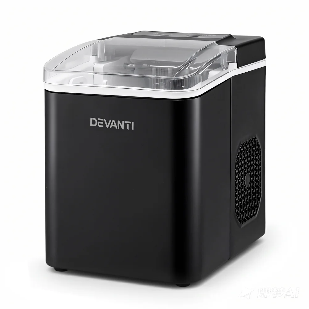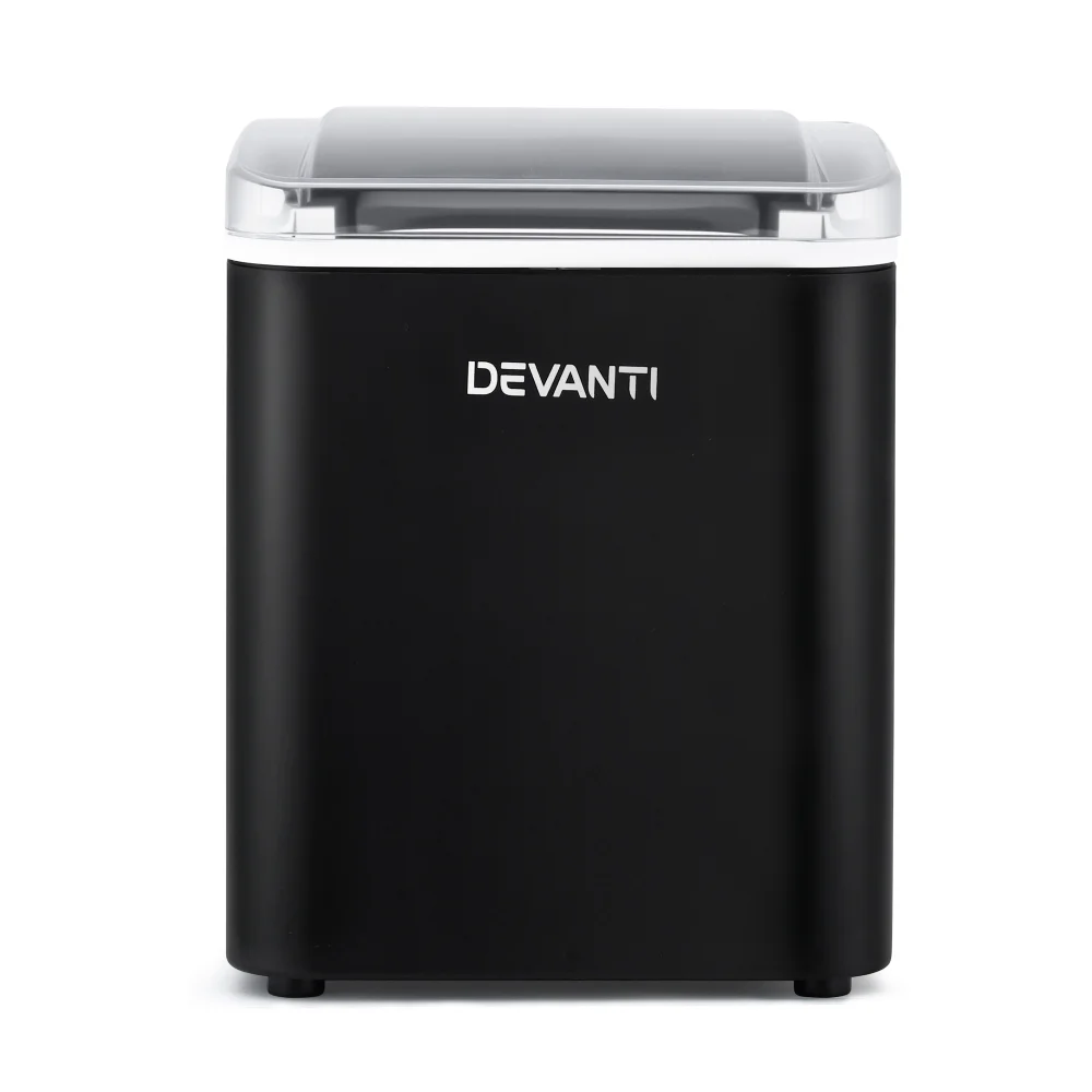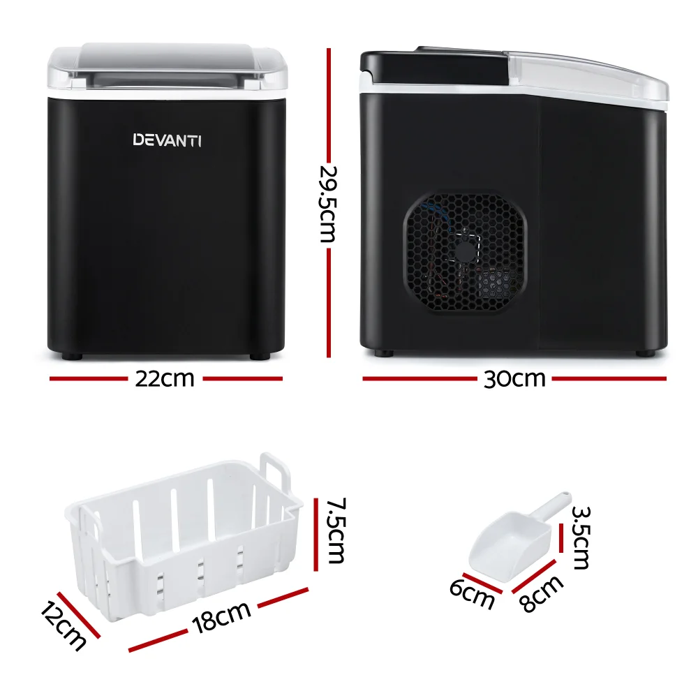 Devanti 12kg Portable Ice Maker Machine, Black - Fast 9 Cubes in 6 Mins, Freon-Free, Self-Cleaning, Quiet Operation