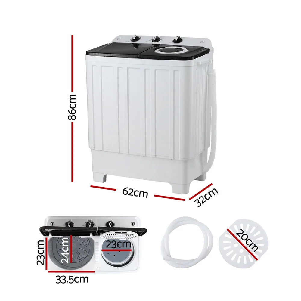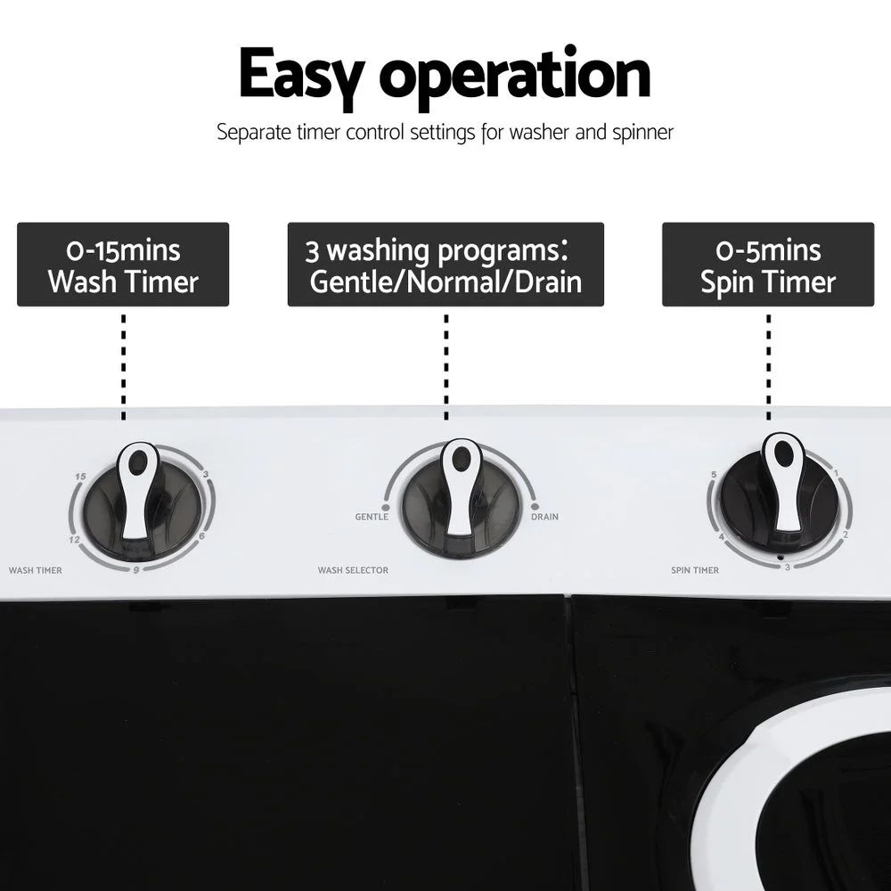 Devanti 5KG Portable Twin Tub Washing Machine, Lightweight & Spin-Dry, Ideal for Camping & Travel, 1-Year Warranty