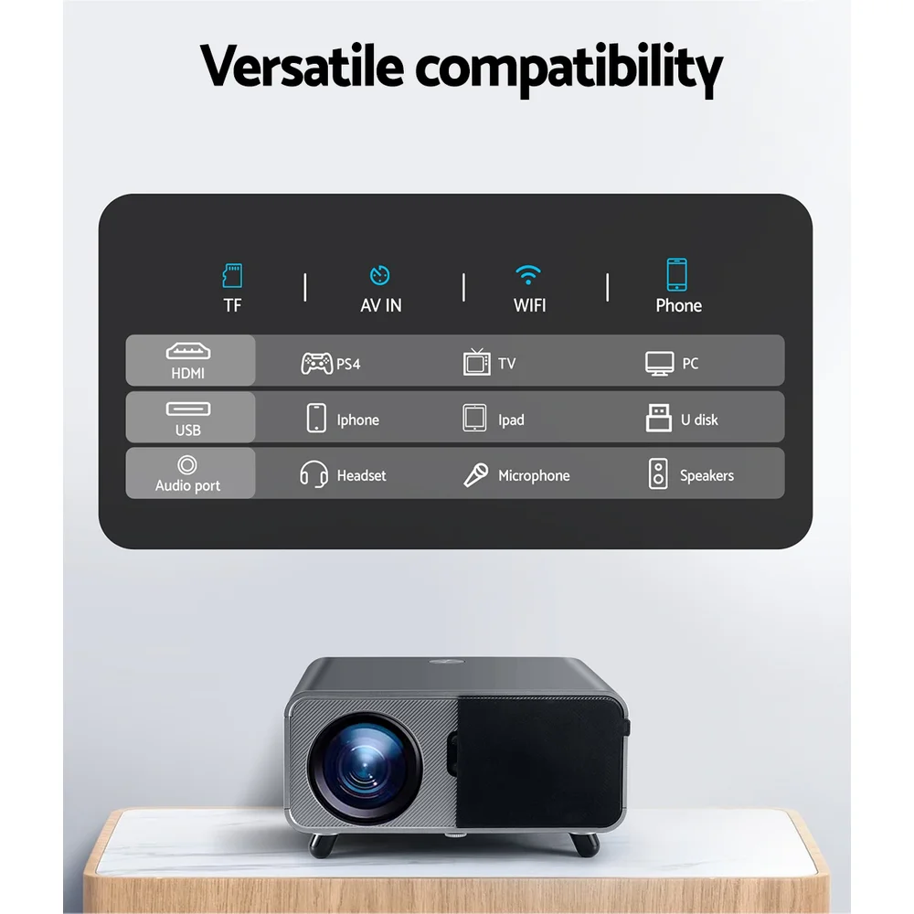 Transform your home into a cinematic paradise with the Devanti Portable Wi-Fi Video Projector. Enjoy stunning 4K support and native 1080P clarity on screens up to 200 inches, with vivid colours powered by 550 ANSI lumens. Stream wirelessly via 2.4G/5G Wi-Fi or connect devices through HDMI, USB, AV, and audio ports. Featuring a built-in heavy bass speaker, 50,000-hour LED lamp, and convenient remote control, Devanti delivers immersive entertainment for movies, gaming, and more.
