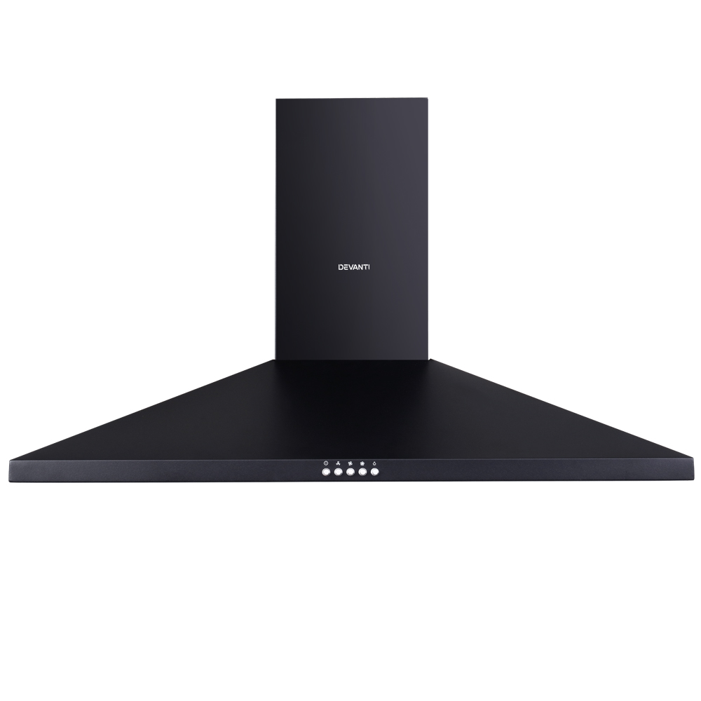 Devanti Range Hood, Black Powder-Coated Steel, 900mm, Wall Mounted, High Performance, 3-Speed, LED Lighting