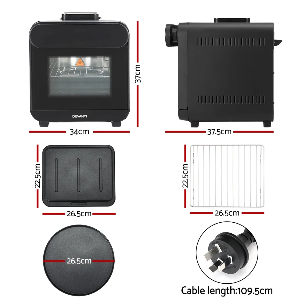 Devanti 15L Steam Air Fryer Oven, 1600W with Touch Control, 8 Presets, Non-Stick Pan, Safety Features, Black