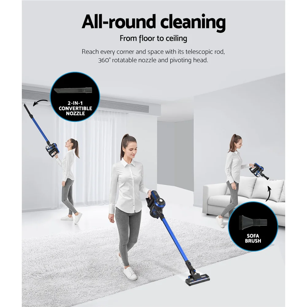 Devanti Stick Vacuum Cleaner Brushless Cordless 250W Blue, 20,000Pa Suction, HEPA Filter, 2 Speeds, 3-in-1 Heads