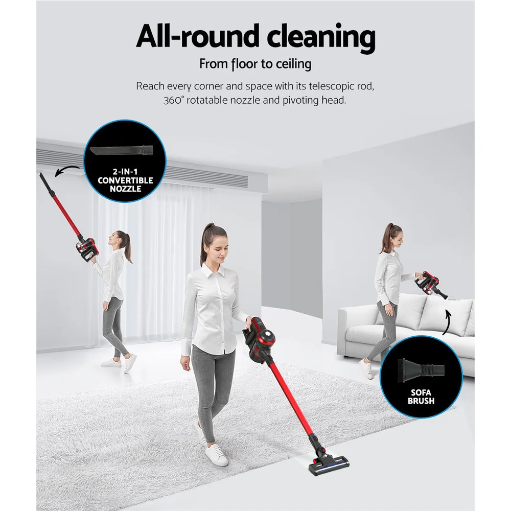 Devanti Stick Vacuum Cleaner Red 150W, HEPA Filter, Cordless, 10,000Pa Suction, LED Headlight, 2-Speed, 1-Year Warranty