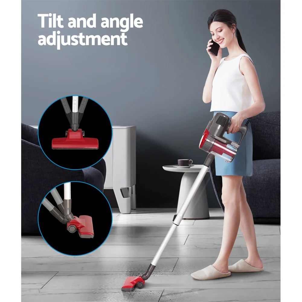Devanti 500W Bagless Stick Vacuum Cleaner - Red, Corded with 3.8m Cable, HEPA Filter, 2-in-1 Nozzle, Extendable