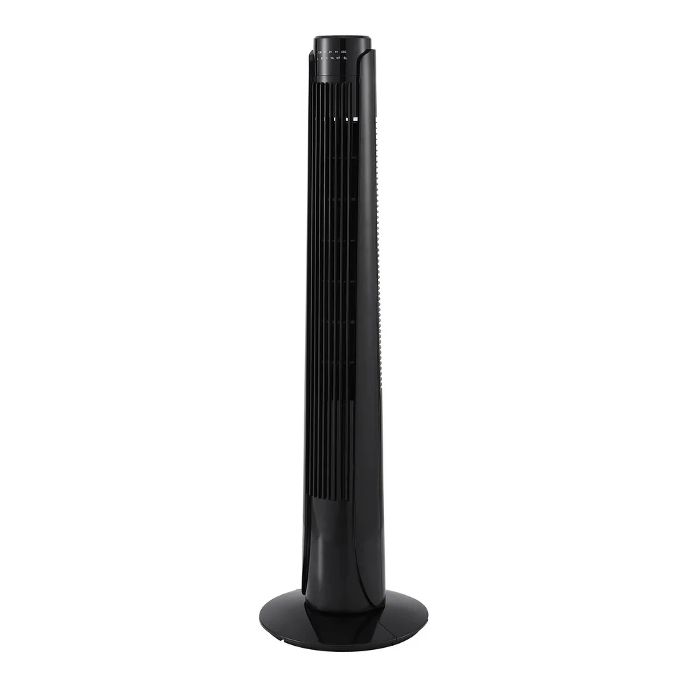 Devanti 93cm Tower Fan Oscillating 3 Speeds with Remote, Touch Panel, 7.5h Timer, Slim Black Design, 50W Power