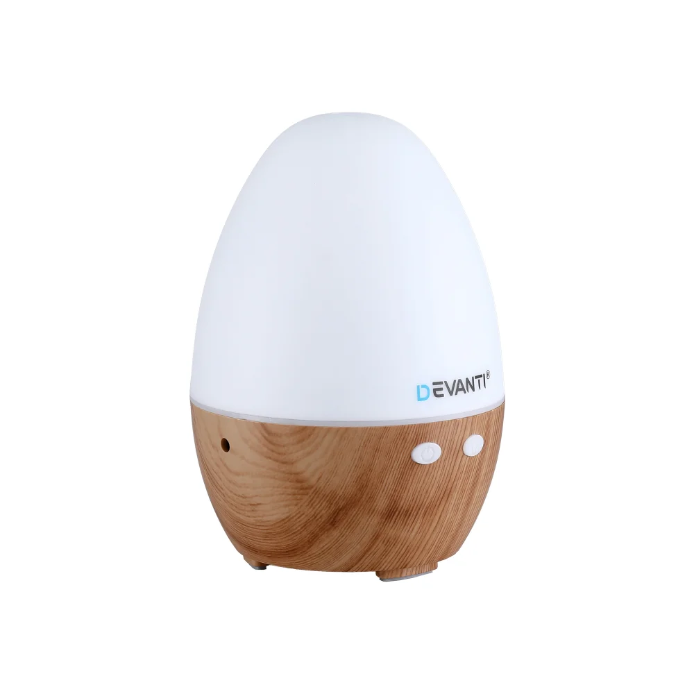 Devanti Aroma Diffuser Aromatherapy Humidifier, Light Wood Grain, 300ml, 7-Color LED, Zen-Inspired Design