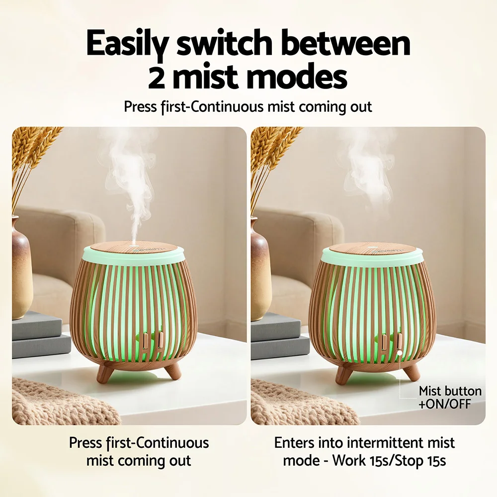 Devanti 4-in-1 Ultrasonic Aroma Diffuser 200ml - Light Wood Grain, LED Colours, Mist Modes, Timer, Quiet Operation