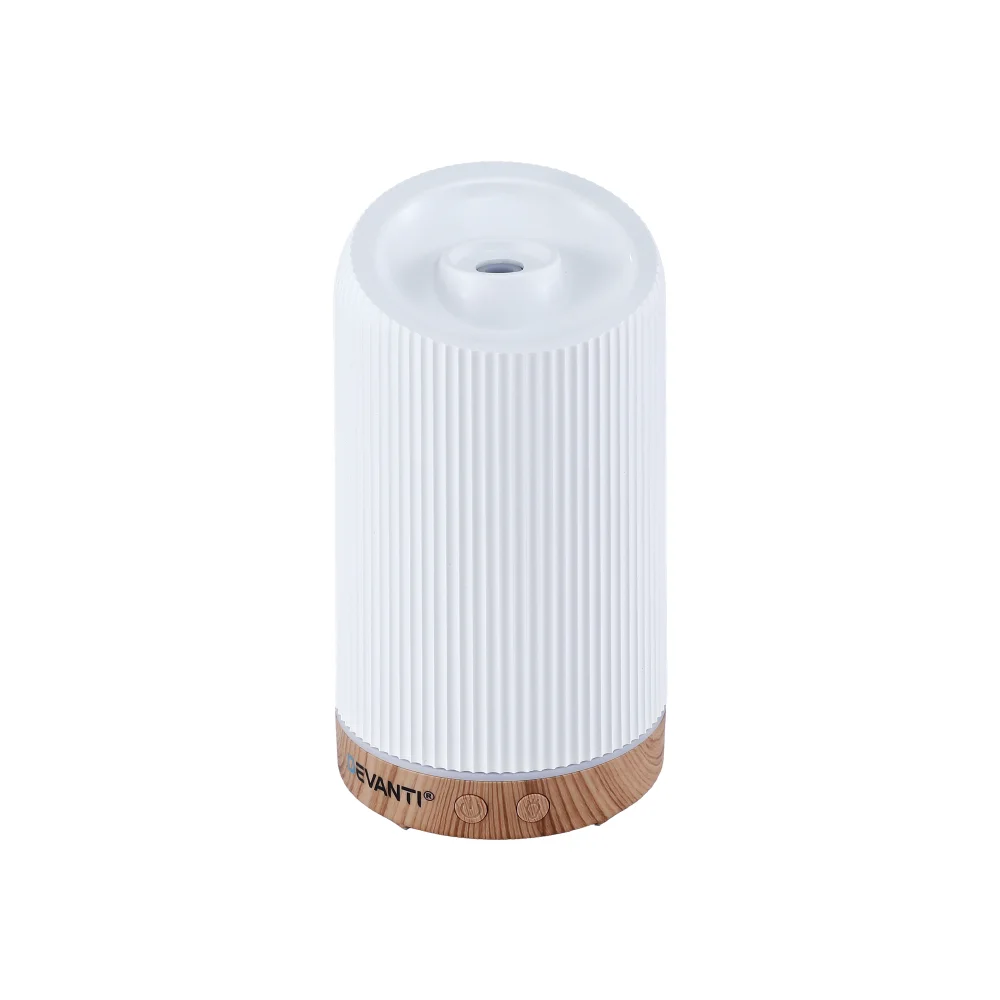 Transform your living space with the Devanti Ultrasonic Aroma Diffuser. This elegantly designed diffuser features a modern vertical striped design with an angled cut edge, offering a touch of sophistication to any room. Its advanced ultrasonic technology disperses a soothing mist that enhances air moisture and uplifts your favourite essential oils. Boasting a 200ml capacity and two mist modes, it provides continuous humidification while operating quietly. The 7-colour LED night light with adjustable brightness and intuitive controls lets you set your ideal ambience. With two timer settings and an automatic waterless shutoff, enjoy effortless operation and peace of mind. Energy-efficient and crafted for style, this diffuser is a perfect addition to your home.