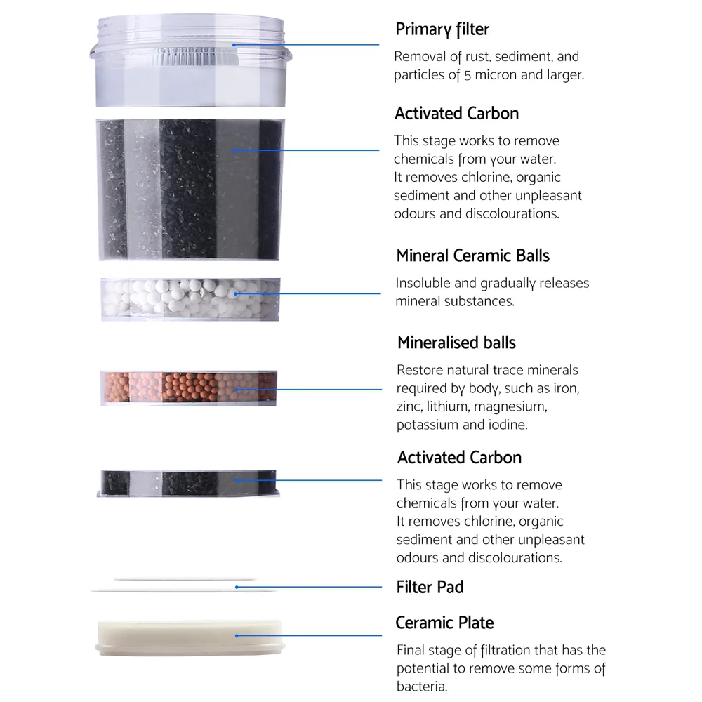 - Material: Activated carbon, White mineral balls, Red mineral balls, Ceramic, Filter cloths