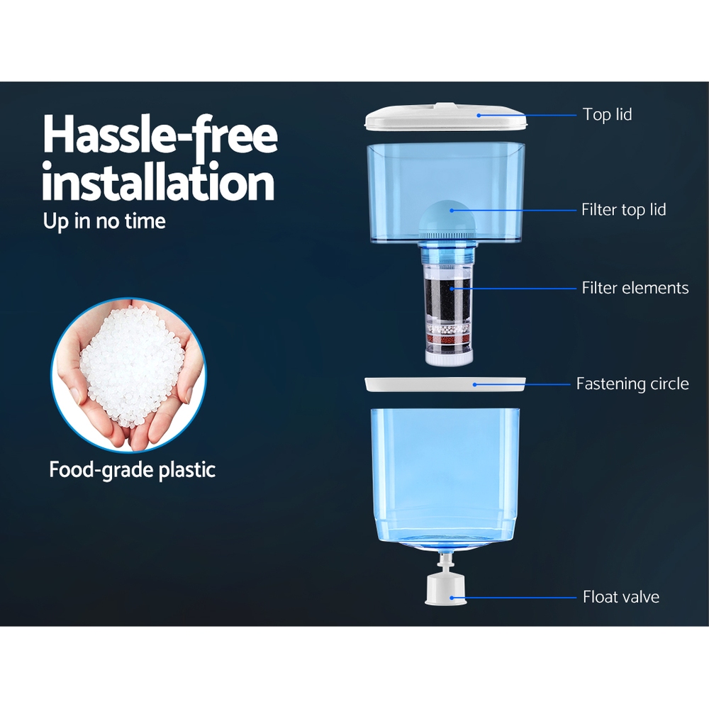 Devanti Water Cooler Dispenser, Food-Grade Plastic, 22L, Blue, 6-Stage Filtration, Purifies Tap Water, Eco-Friendly